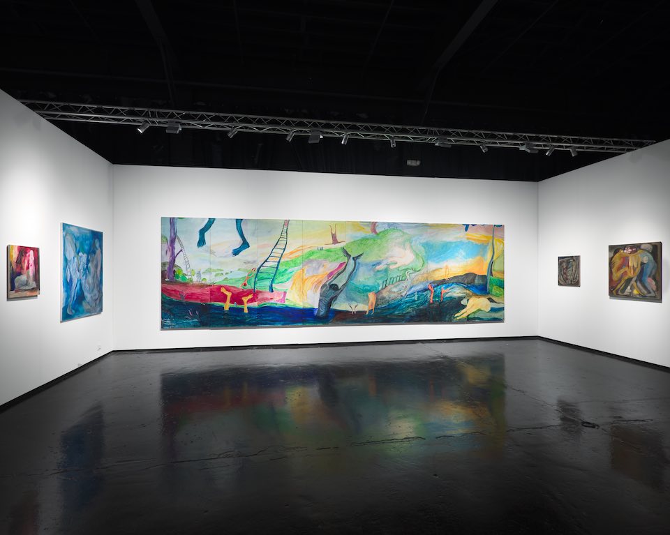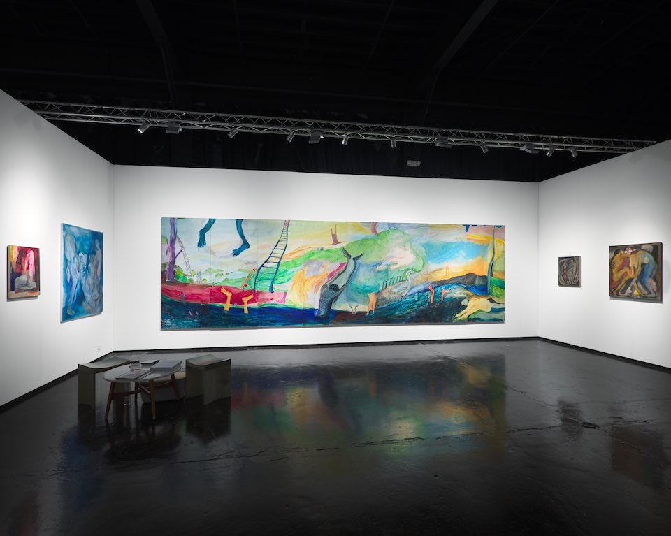 PROXYCO Gallery presents a solo booth featuring one of Lucía Vidales’ most ambitious works to date: Viendo el Monte Calvario (Looking at Mount Calvary), 2020, a 30-foot-long painting composed of eight panels. Originally commissioned for the historic Sala de Arte Público Siqueiros in Mexico City — the former studio of David Alfaro Siqueiros — the work enters into dialogue with a painting Siqueiros made during his imprisonment at Lecumberri prison, in which Christ is reimagined not as a religious icon but as a political prisoner and symbol of dissent.